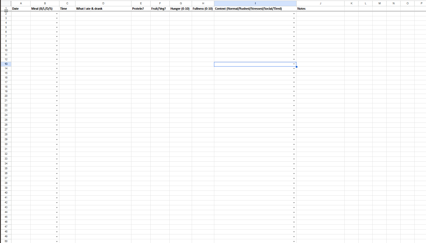 7 Day Food Journal